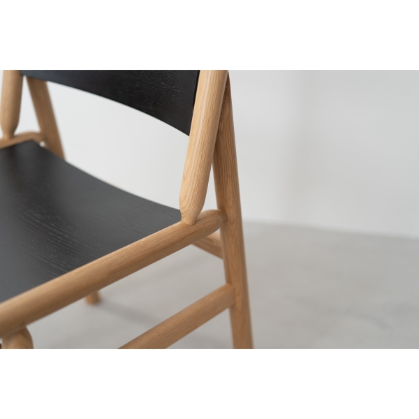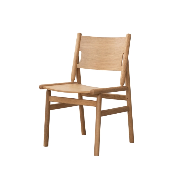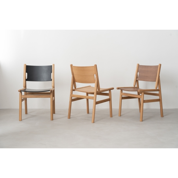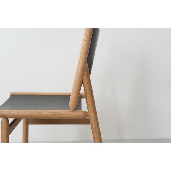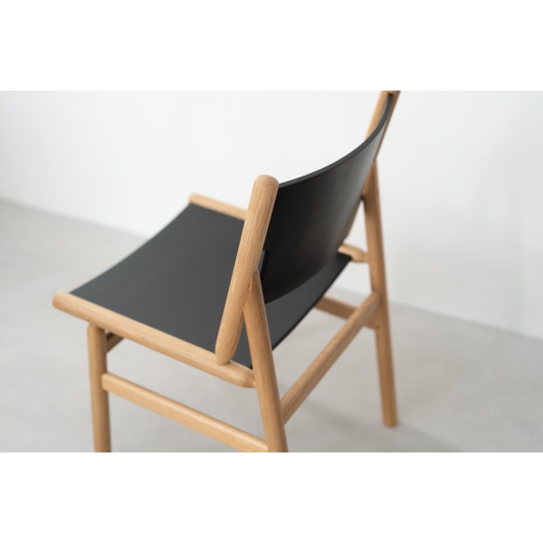 オークの丸棒と成型合板を組み合わせた独特な構造のダイニングチェア。