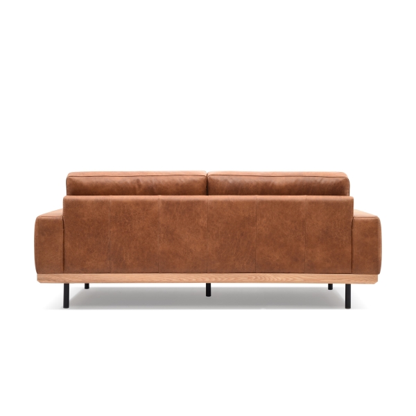ボリュームのあるクッションに、すっきりとした脚元の木とスチールが