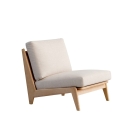 素材のコントラストが美しい木フレームソファ。