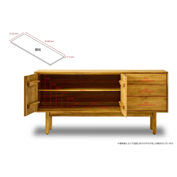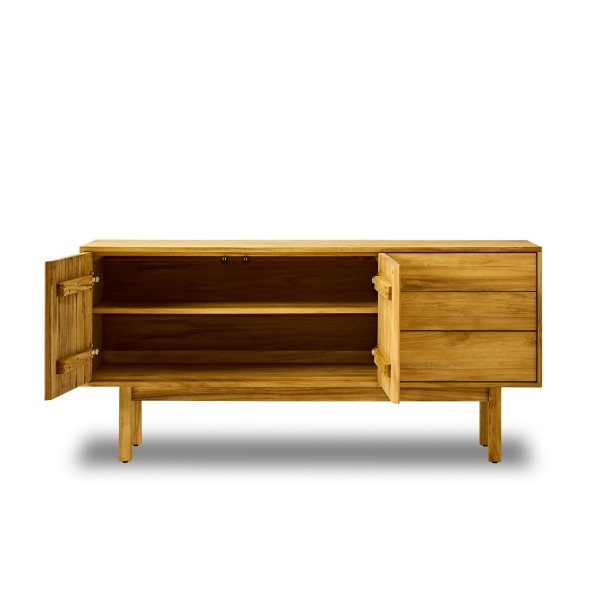 「千切り」がアクセントのチーク無垢材のサイドボード。