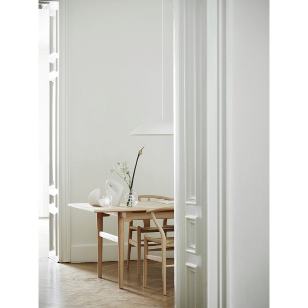 Yチェアの発端は中国の椅子に座るデンマーク商人の肖像画。商人が座る明代の椅子がデザインの起源となっています。素晴らしい使用感と使い勝手、そして特徴的なラインを描く美しいフォルム。椅子に求められる機能性と見た目の美しさを同時に満たす椅子、と多くの人が評価するCH24、Yチェア。まさに、デニッシュモダンの真髄と言えます。