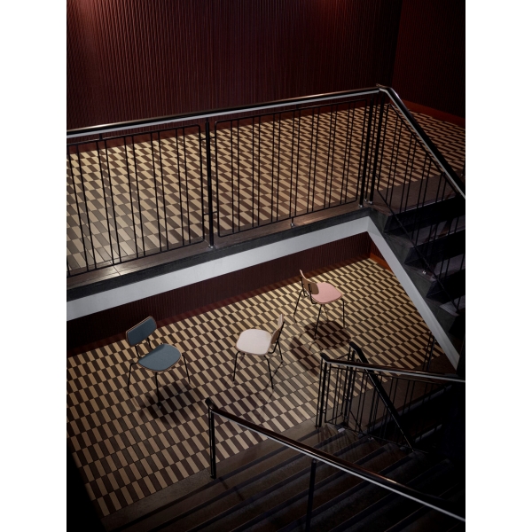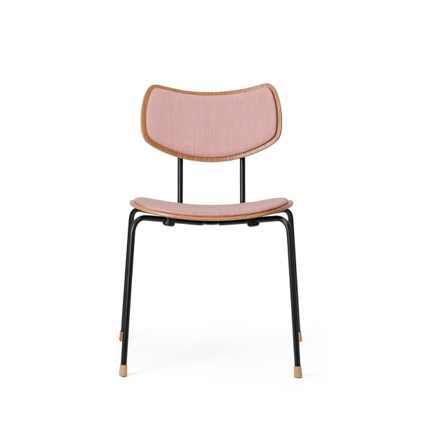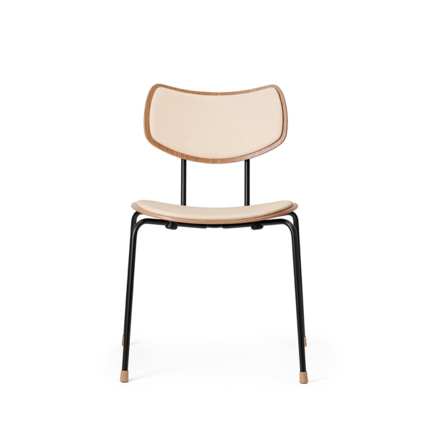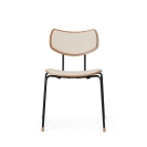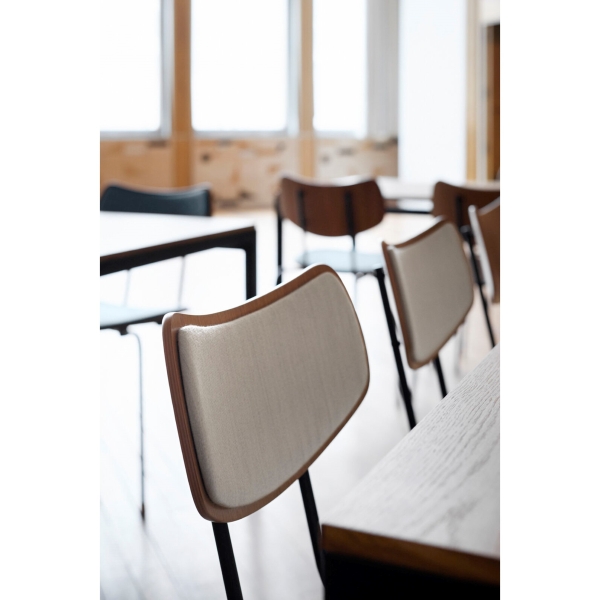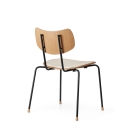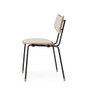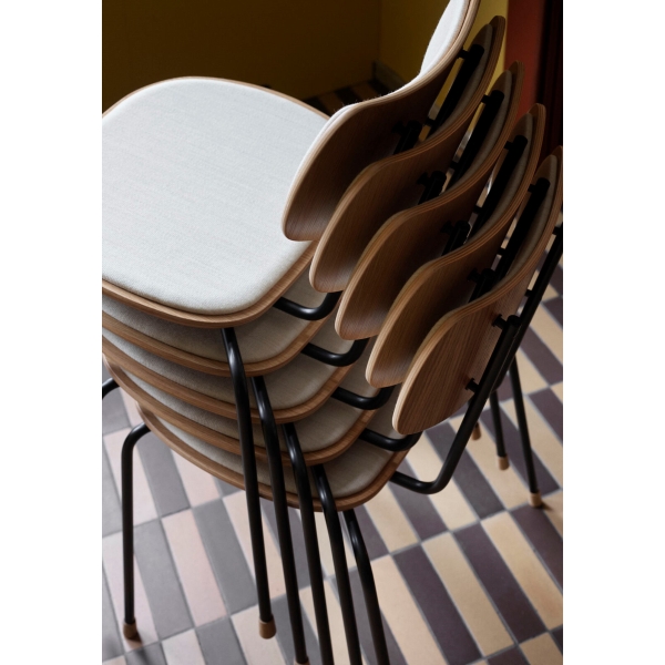 木とスチールで精巧に作られた座面とバックレストは、張り加工のオプションにより快適性が一段と高まりました。また、エレガントな木製の脚がスタッキング可能なデザインに職人技の趣を添えます。