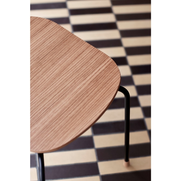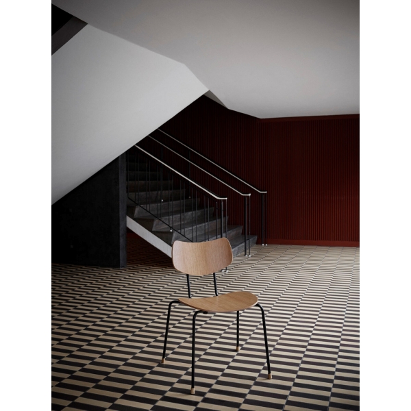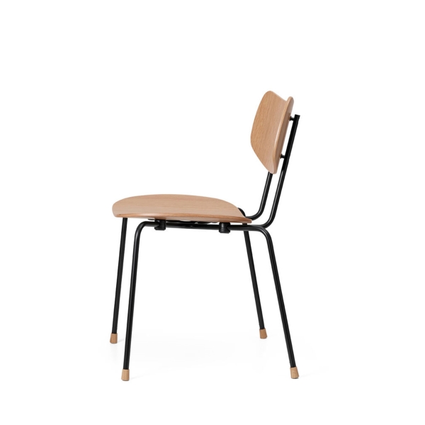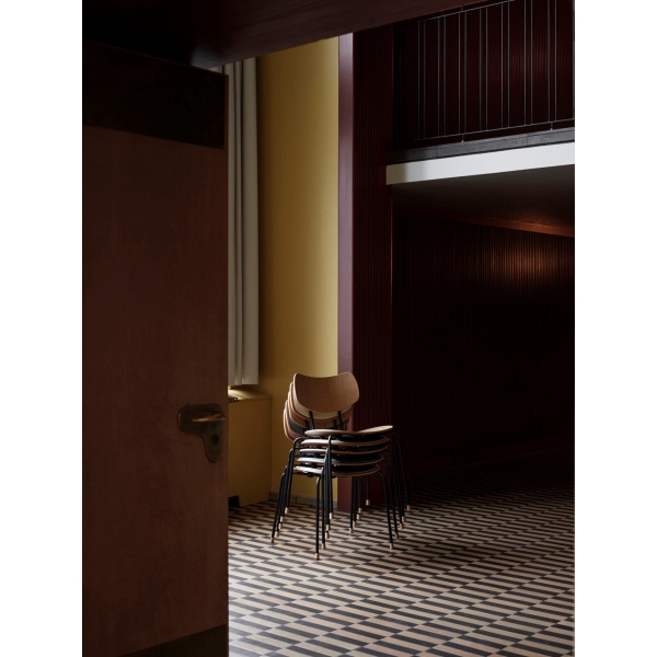 木とスチールで精巧に作られた座面とバックレストは、張り加工のオプションにより快適性が一段と高まりました。また、エレガントな木製の脚がスタッキング可能なデザインに職人技の趣を添えます。