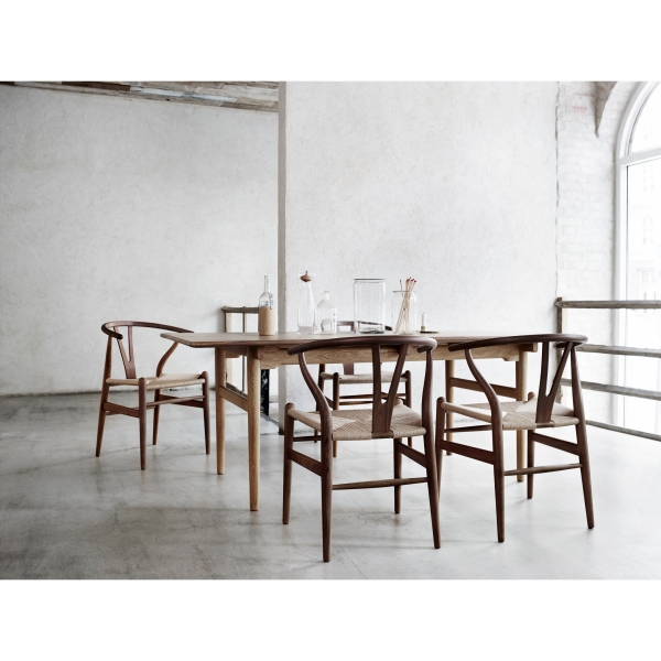 Yチェアの発端は中国の椅子に座るデンマーク商人の肖像画。商人が座る明代の椅子がデザインの起源となっています。素晴らしい使用感と使い勝手、そして特徴的なラインを描く美しいフォルム。椅子に求められる機能性と見た目の美しさを同時に満たす椅子、と多くの人が評価するCH24、Yチェア。まさに、デニッシュモダンの真髄と言えます。