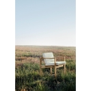 傾斜をつけた座と背、そしてアームレスト、脚、貫き、各部が二つの正方形を構築するように、ほぞ継ぎ加工されています。