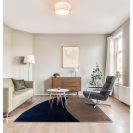 ゆるやかなカーブが描く大胆なストライプパターンと温かみのある配色がモダンなラグは、インテリアのアクセントになります。